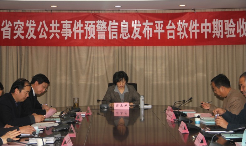 2012年11月29日下午,在陕西省气象局召开了“陕西省突发公共事件预警发布平台”项目中期验收大会。陕西省气象局副局长薛春芳主持会议,与会领导有:陕西省应急办马胜利主任,陕西省应急办郑胜利副主任,陕西省气象局观测处李社宏处长,陕西省气象局计财处吕东峰处长,陕西省气象局减灾处段昌辉处长,陕西省气象服务中心白光弼主任,陕西省减灾服务中心赵奎锋副主任,陕西省气象中心杨银见主任等。